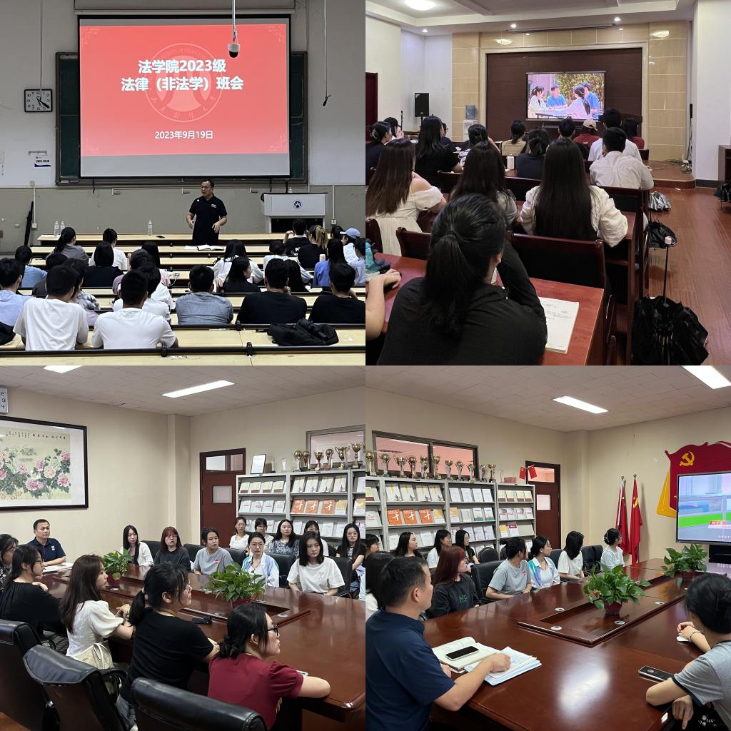 在教学楼1101和学院会议室分别召开了2023级研究生新生第一次班会。本次班会由辅导员沙林斌老师主持,全体新生参加。