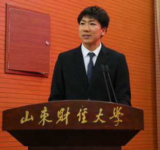 老生代表上台发言,分享了过去一年在校期间的收获和感悟,2023级法学学硕班的刘江山作为新生代表分享自己的入学感言。