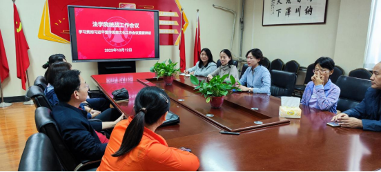 与会教师表示,法学专业教师要不断从中华优秀传统文化中汲取智慧和力量,将习近平法治思想教育与中华优秀传统法律文化传承相融合,坚持立德树人,努力培养新时代法治人才,同时加强法学理论研究,为学院发展做出贡献。