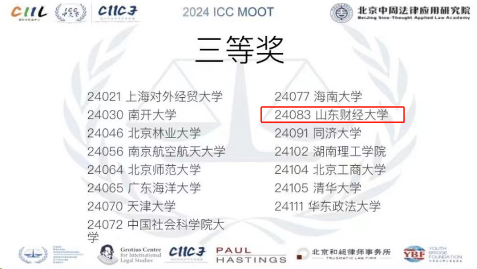 代表队与清华大学、南开大学、同济大学、华东政法大学等高校同获全国三等奖。