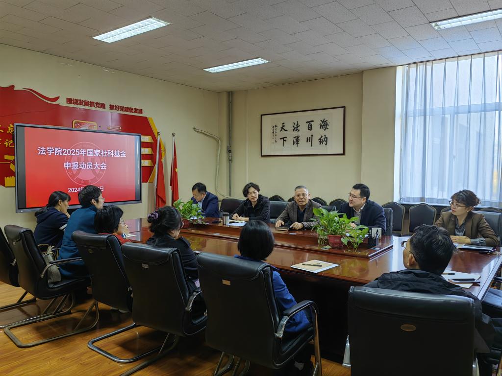 于4508会议室召开2025年度国家社科基金申报动员大会,传达学校科研工作暨国家“两金”项目申报启动会的会议精神和洪俊杰校长在会议上的重要讲话,对捕鱼游戏