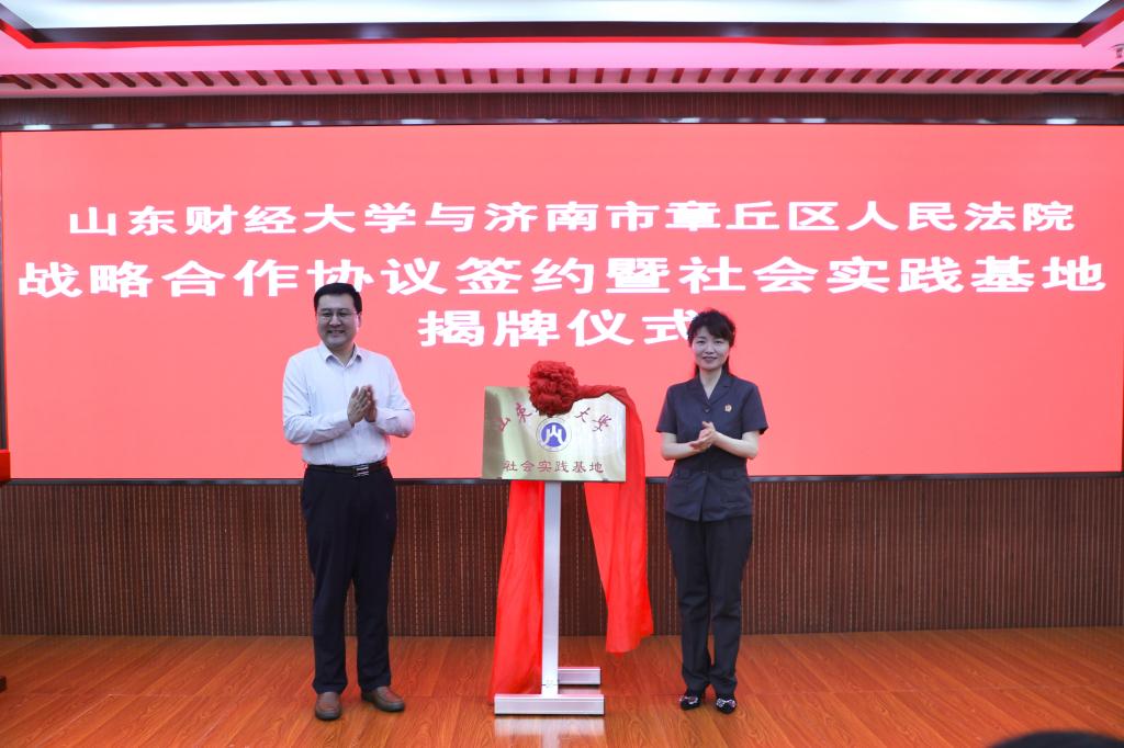 签约仪式后,张琳与田越洋共同为“社会实践基地”揭牌。红绸揭开,标志着这一校地合作项目正式落地生根,双方将携手开启法治人才培养的新篇章。