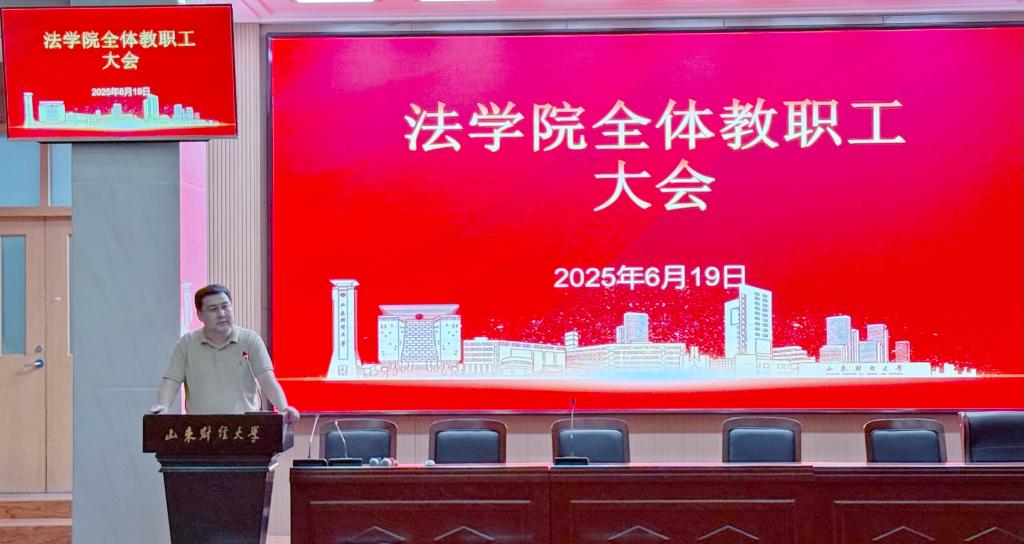 在燕山校区三号教学楼报告厅召开全体教职工大会。会议由学院党委书记刘洪主持。