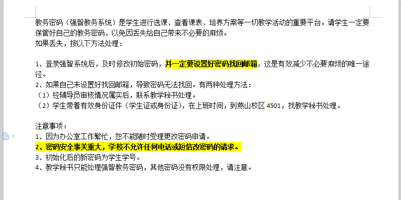 学生如何找回丢失的强智教务系统密码