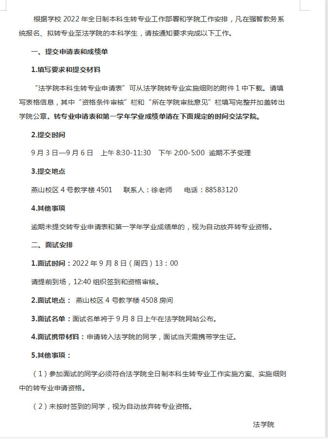 2022年捕鱼游戏 全日制本科生转专业交表、成绩单及面试安排