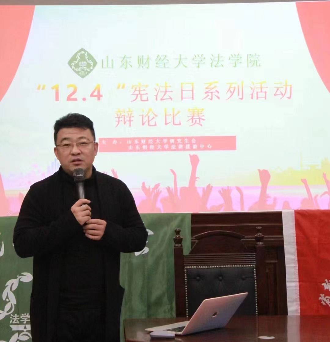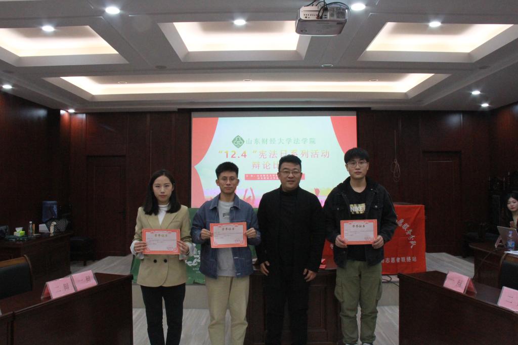 研究生会和法律援助中心在学院模拟法庭举办“12.4”宪法宣传日系列辩论赛活动。学院党委副书记沙林斌、刘岩博士、本科生辩论协会成员、部分研究生参与本次活动。