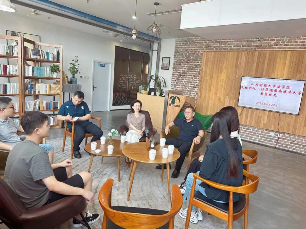 校友,与部分西南政法大学在校生校友亲切座谈交流。山财大重庆校友会副会长刘忠海,秘书长刘志伟等十几位校友,热情欢迎危红书记一行的到来。见到母校老师,校友们心情都无比激动,大家自我介绍,回味大学时的欢乐时光和永恒记忆,畅谈现在的工作、生活状况。