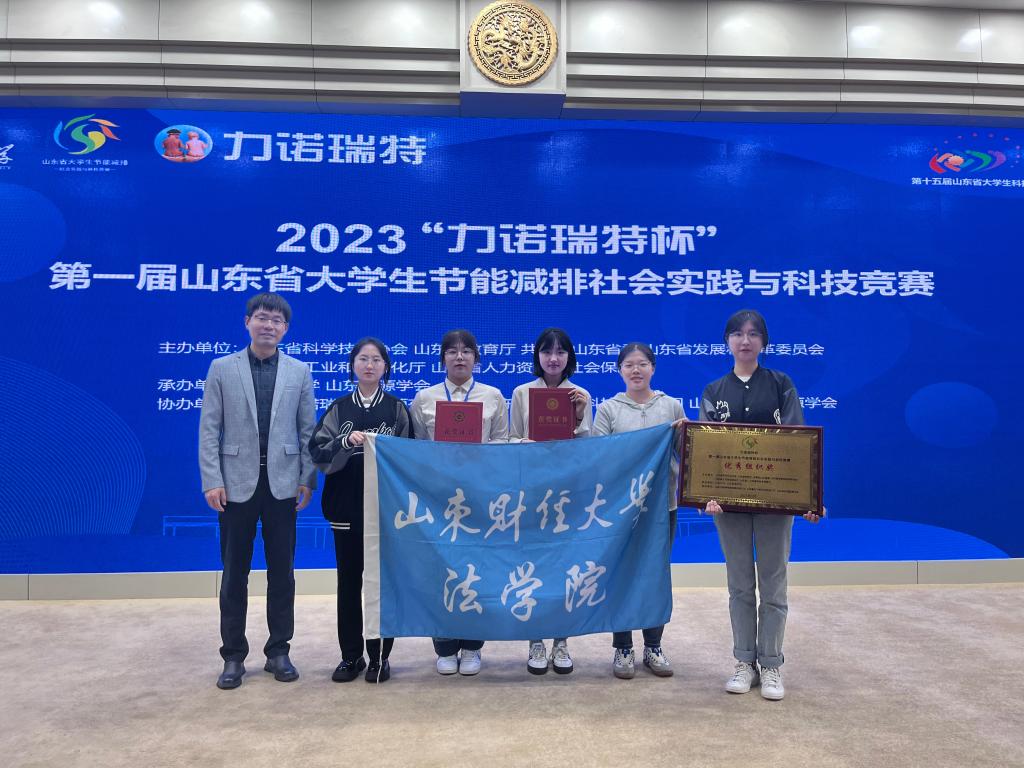 2022级法学3班贾馥玮作为项目负责人,2022级法学3班罗善卿、臧婧杉、陈效印、李国政、孟汇,2022级法学7班段美萱提交的项目作品《“轻装”上阵——基于绿色发展理念对“过度包装”现象的调查分析》获得省赛一等奖。