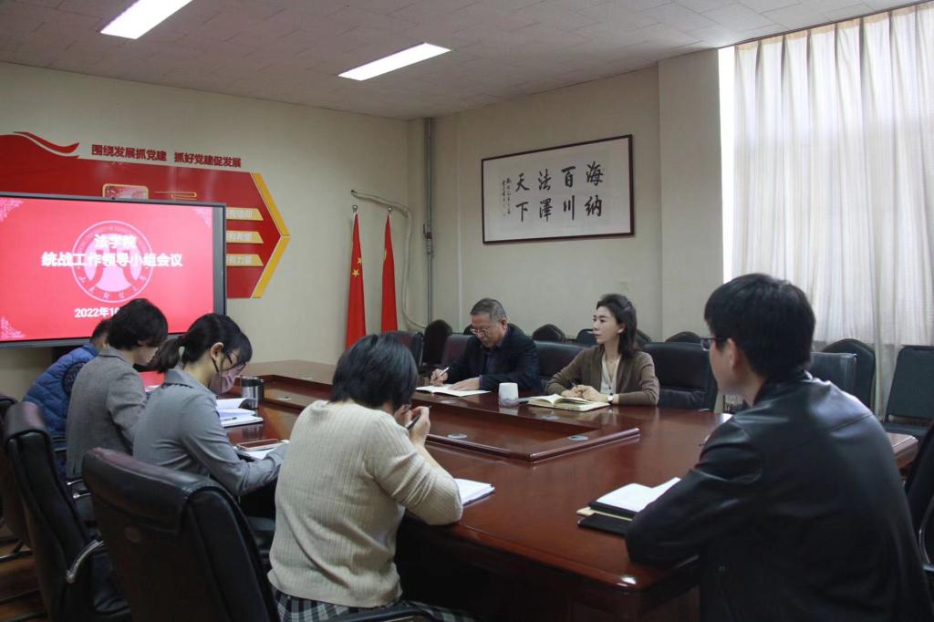 统战工作情况和近期工作重点作出报告。随后,与会人员就学院统战工作进行充分讨论。最后,危红代表学院党委肯定了统战工作取得的成绩,并对进一步做好学院统战工作提出四点要求:一是要强化政治引领,提高政治站位,充分发挥统战工作领导小组的优势,各成员按照责任分工,积极作为,不断增强统战工作的责任感、使命感和紧迫感;二是要深入学习贯彻《中国共产党统一战线工作条例》,深刻认识和理解《条例》的重要地位,准确把握统一战线工作的主要任务和着力重点,引导广大统一战线成员增强政治认同、思想认同与情感认同;三是要加强意识形态管控,防范化解风险挑战,切实维护好统一战线领域政治安全和意识形态安全;四是要凝心聚力促发展,充分发挥统一战线“法宝”优势和党外人士资源优势,为学院改革发展作出贡献。以实际行动迎接党的二十大胜利召开。