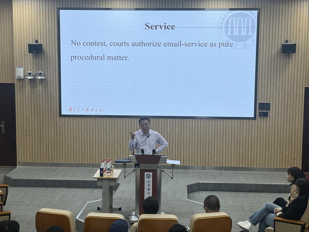 邀请到湘潭大学法学学部教授、司法部首批全国涉外仲裁领军人才培训班成员、JESSUP等多项模拟法庭常任评委覃斌武在我校燕山校区Y103作了题为《美国法院管辖中国跨境电商企业的法理,规则和应对》的专题报告。讲座前,捕鱼游戏