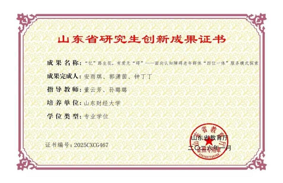 该成果通过探索面向认知障碍老年人的以“居家为基础、社区为依托、机构为补充、医院为保障”的“四位一体”医养结合服务机制,强化家庭作为老人的生活根基,培育社区内认知障碍老年友好环境,链接养老机构提供高质量资源,推动医院加强健康保障,旨在形成可复制、可推广的协同服务机制,为认知障碍老人营造良好生活环境并增进生命福祉。