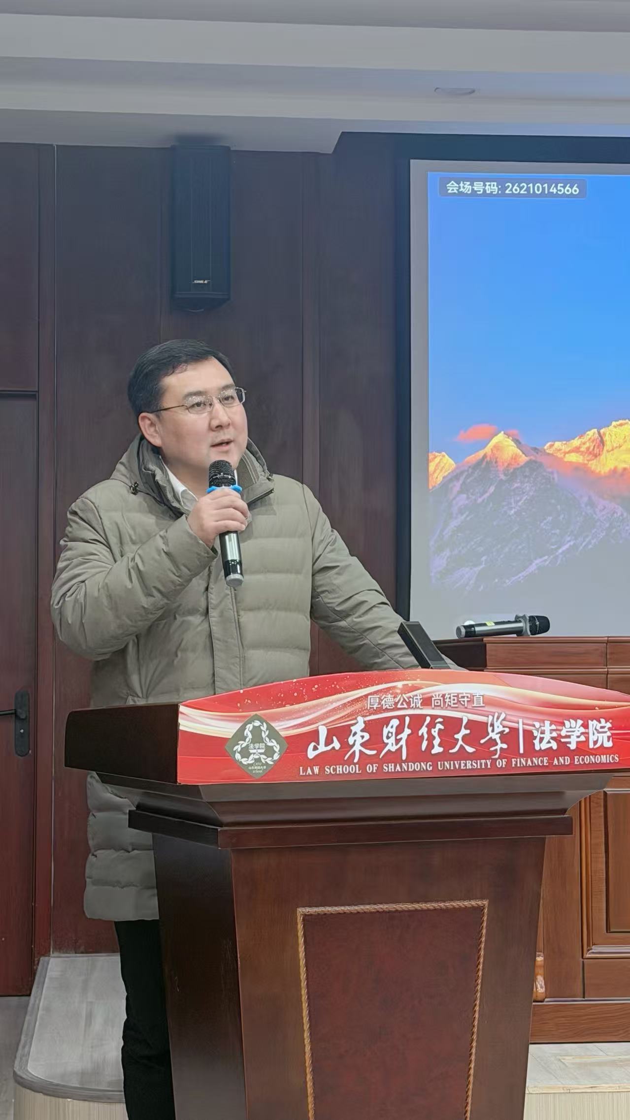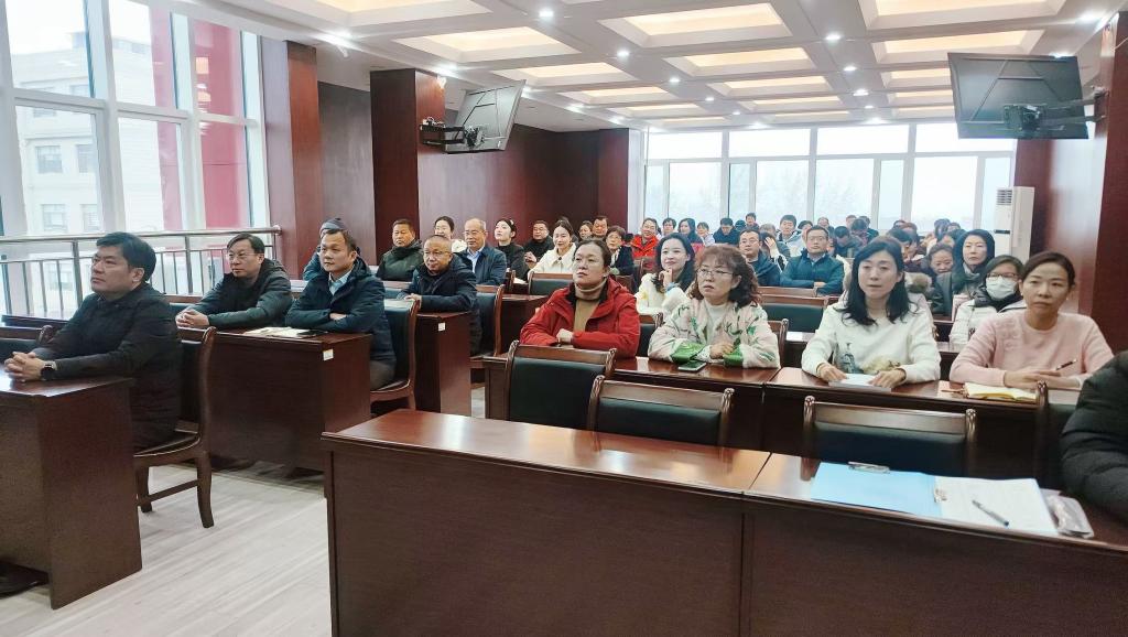 在模拟法庭召开全体教职工大会,全面总结2025年工作,部署2026年重点任务。学院领导班子及全体教职工参加会议。