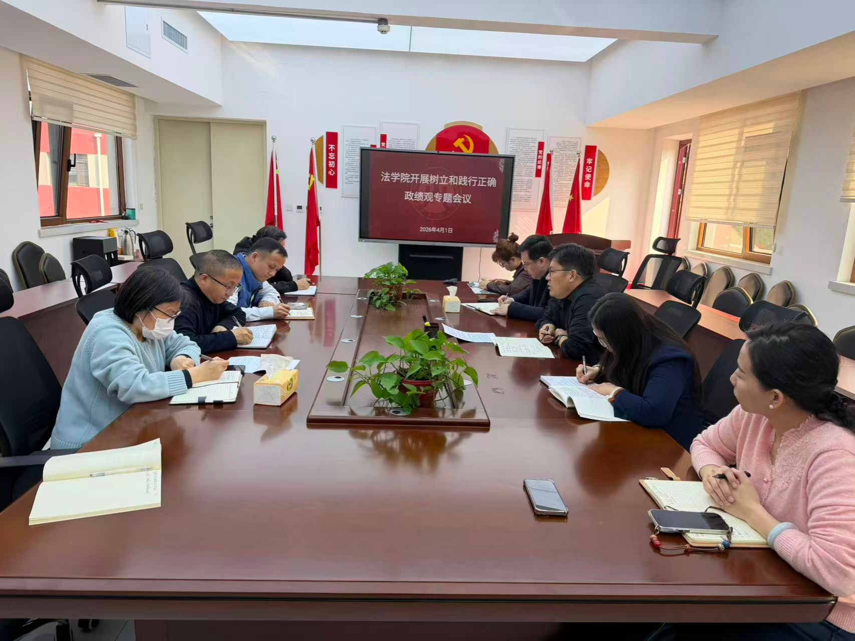 4月1日,学院党委开展树立和践行正确政绩观学习教育。会议由党委书记刘洪主持,全体领导班子成员参加会议。
