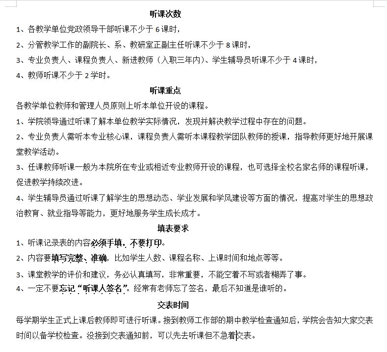 教师听课的相关要求及表格下载