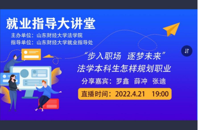 主办,校就业指导处指导的职业规划讲座顺利进行。本次活动我校特邀山东大学法学博士罗鑫律师及其律师团队就法学本科生怎样进行职业规划的问题做线上讲座,为学生提供切实有益的就业指导。