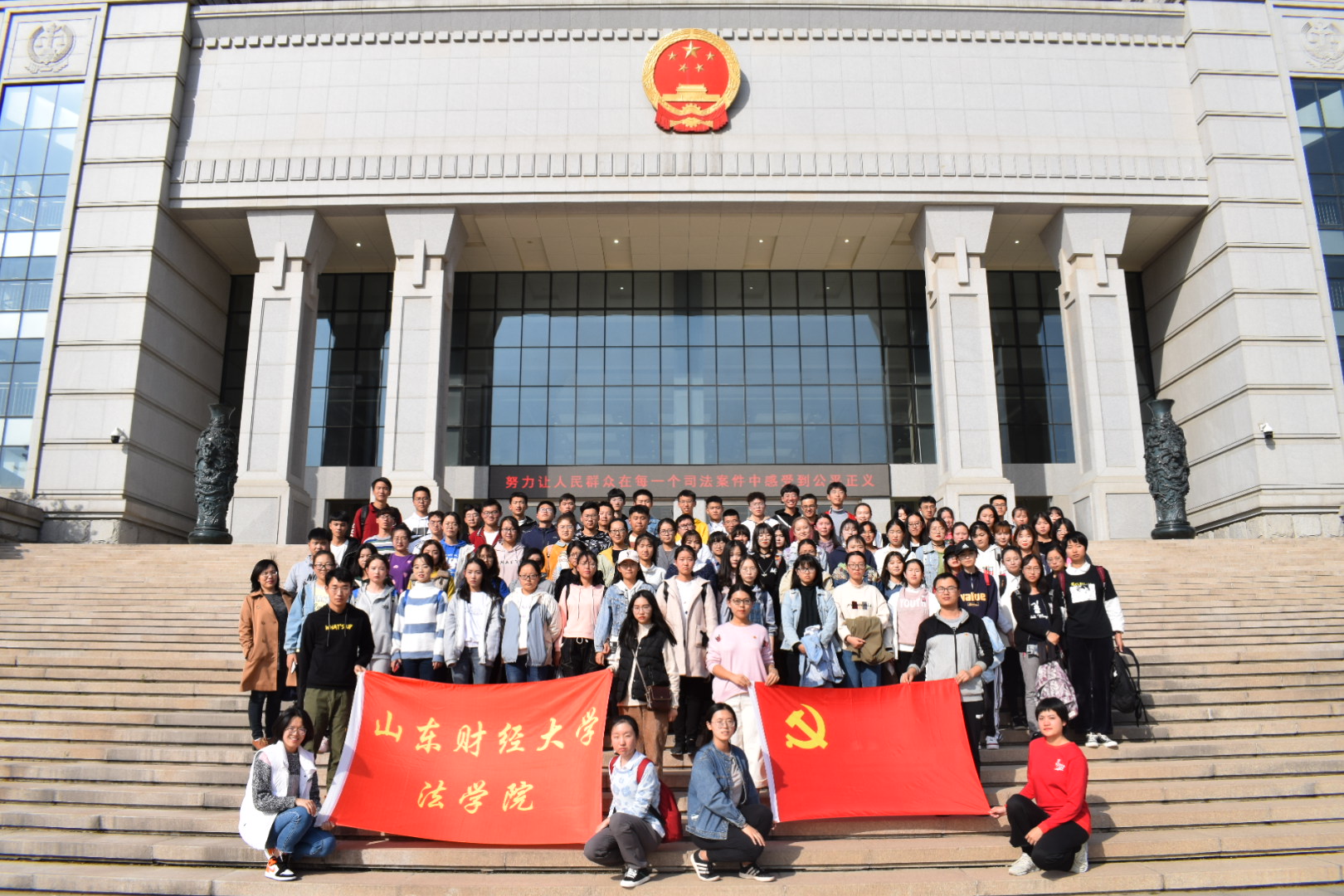 组织全体2019级学生及部分学生党员赴山东省高级人民法院参观学习。